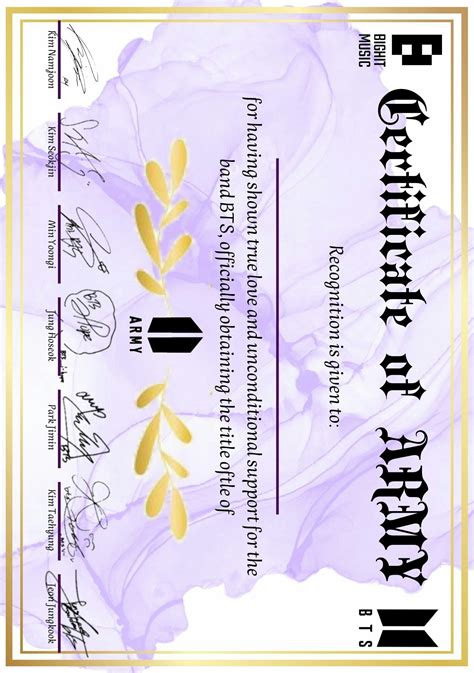 Bts Certificate For Army . Just print at home ') #bts #army #btsarmy. Happy ever after (2018) | bts 5th muster: