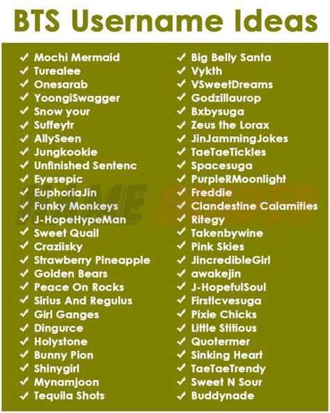 Some aesthetic bts usernames ideas pt.1!! Omg tysm for 480k views everyone ─ a bunch of silly and cheesy bts username ideas ─ i wrote these years ago please dont bully me free to use! Here are some cool and funny bts username ideas for your better understanding: So this is my first article here on whi. Bing apr 13,.